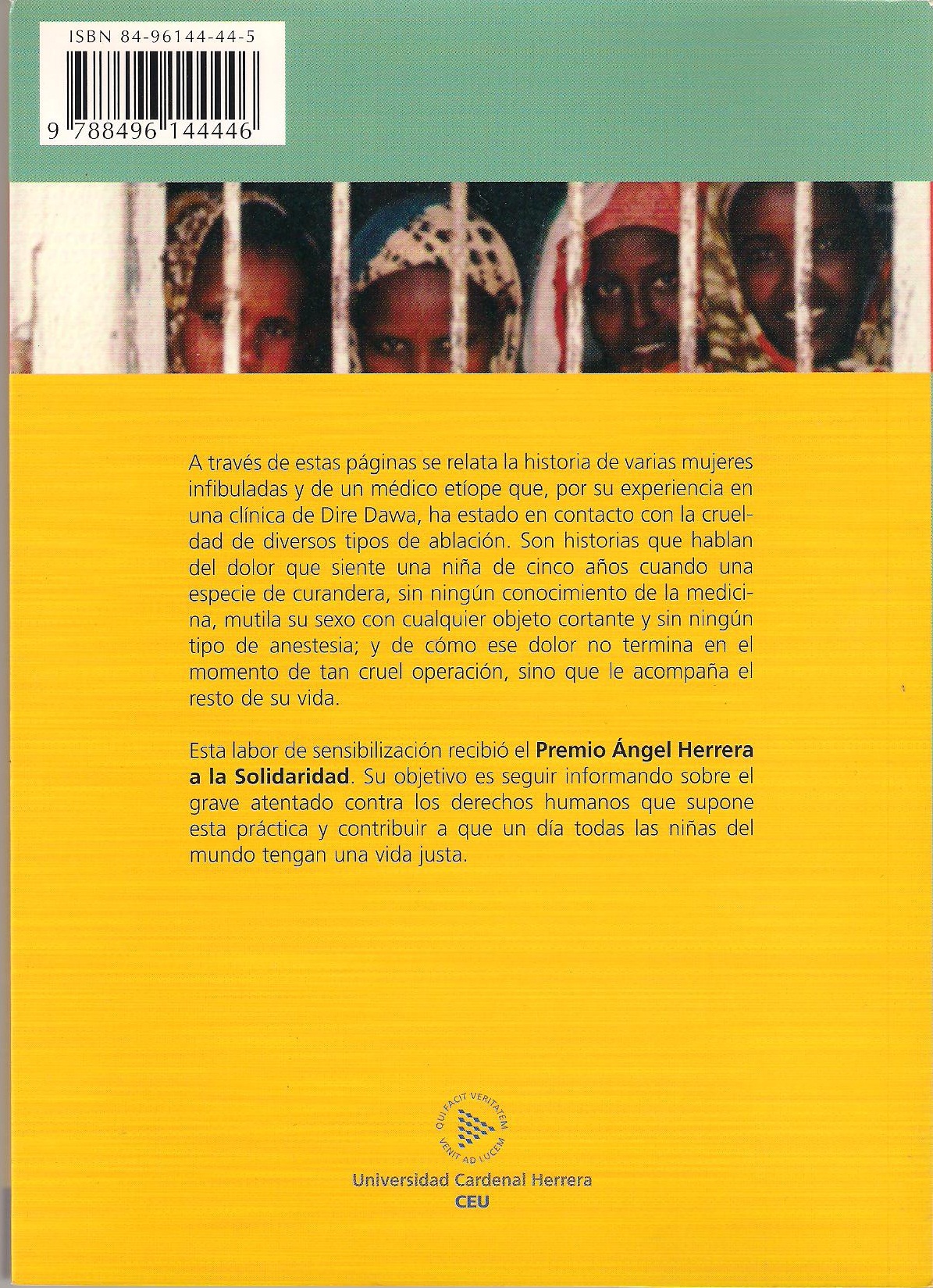 Sus páginas reúnen escalofriantes testimonios de mujeres que pasaron por el trance de la infibulación y que por primera vez en la historia han decidido rechazarla, enfrentándose a su propia sociedad que las margina y desprecia si no se someten a tan salvaje ritual. Historias cosechadas mientras trabajaba en Etiopía. El libro de Luna entra en sus vidas sufrientes y mutiladas con un toque de esperanza. Da cuenta de la fructífera campaña de sensibilización que se realizó en la Comunidad Valenciana entre enero y marzo de 2002, con la presencia de Sheida Tehir, universitaria infibulada. El resultado, 3000 adhesiones institucionales y 50.000 firmas de apoyo. Poco después el gobierno etíope promulgó un proyecto de ley contra los malos tratos que también incluye la condena de la mutilación.»