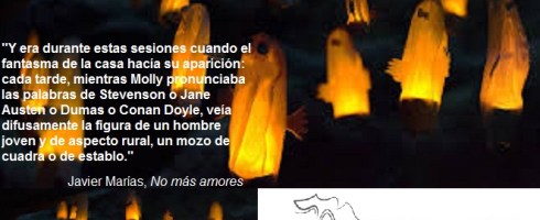 «Y era durante estas sesiones cuando el fantasma de la casa hacía su aparición: cada tarde, mientras Molly pronunciaba las palabras de Stevenson o Jane Austen o Dumas o Conan Doyle, veía difusamente la figura de un hombre joven y de aspecto rural, un mozo de cuadra o de establo. La primera vez que lo vio, de pie y con los codos apoyados en el respaldo del sillón que ocupaba la señora, como si escuchara atentamente el texto que recitaba ella, estuvo a punto de gritar del susto. Pero enseguida el joven se llevó el índice a los labios y le hizo tranquilizadoras señas de que continuara y no denunciara su presencia. Su rostro era inofensivo, con una tímida sonrisa perpetua en los los ojos burlones, alternada tan sólo, en algunos momentos graves de la lectura, con una seriedad alarmada e ingenua propia de quien no distingue del todo entre lo acaecido y lo imaginado. La joven obedeció, aunque no pudo evitar aquel día levantar la vista demasiadas veces y dirigirla por encima del moño de la señora Cromer-Blake, que a su vez alzaba la suya inquieta como si no estuviera segura de llevar derecho un sombrero hipotético o debidamente iluminada una aureola. «¿Qué ocurre, niña?», le dijo alterada. «¿Qué es lo que miras ahí arriba?». «Nada», contestó Molly Muir, «es una manera de descansar los ojos para volver a fijarlos luego. Tanto rato me los fatigaría.» El joven asintió con su pañuelo al cuello y la explicación bastó para que en lo sucesivo la señorita mantuviera su costumbre y pudiera saciar al menos su curiosidad visiva. Porque a partir de entonces, tarde tras tarde y con pocas excepciones, leyó para su señora y también para él, sin que aquella se diera jamás la vuelta ni supiera de las intrusiones de éste.»