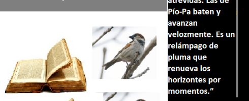 «Los gorriones son los niños del aire, la chiquillería de los arrabales, plazas y plazuelas del espacio. Son el pueblo pobre, la masa trabajadora que ha de resolver a diario de un modo heroico el problema de la existencia. Su lucha por existir en la luz, por llenar de píos y revuelos el silencio torvo del mundo, es una lucha alegre, decidida, irrenunciable. Ellos llegan, por conquistar la migaja de pan necesaria, a lugares donde ningún otro pájaro llega. Se les ve en los rincones más apartados. Se les oye en todas partes. Corren todos los riesgos y peligros con la gracia y la seguridad que su infancia perpetua les ha dado.